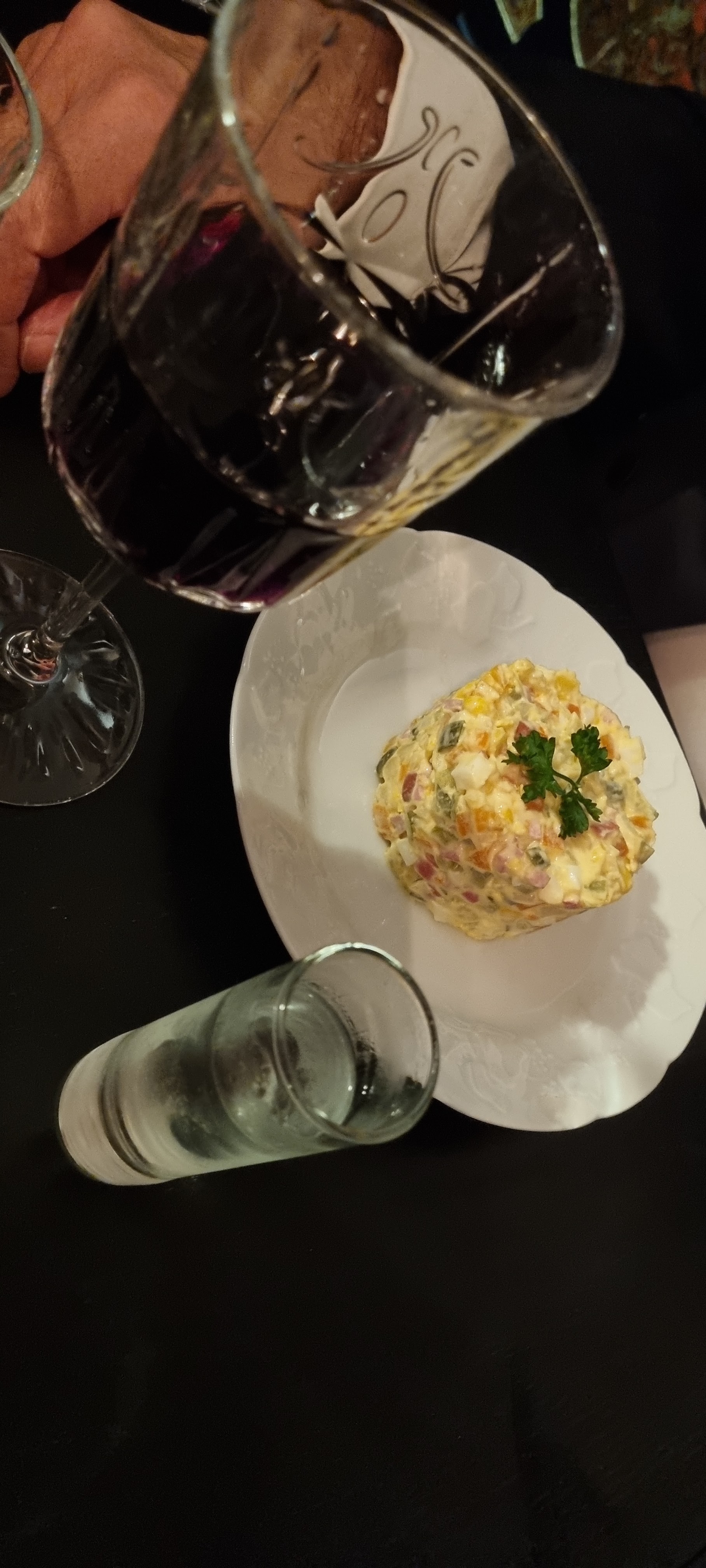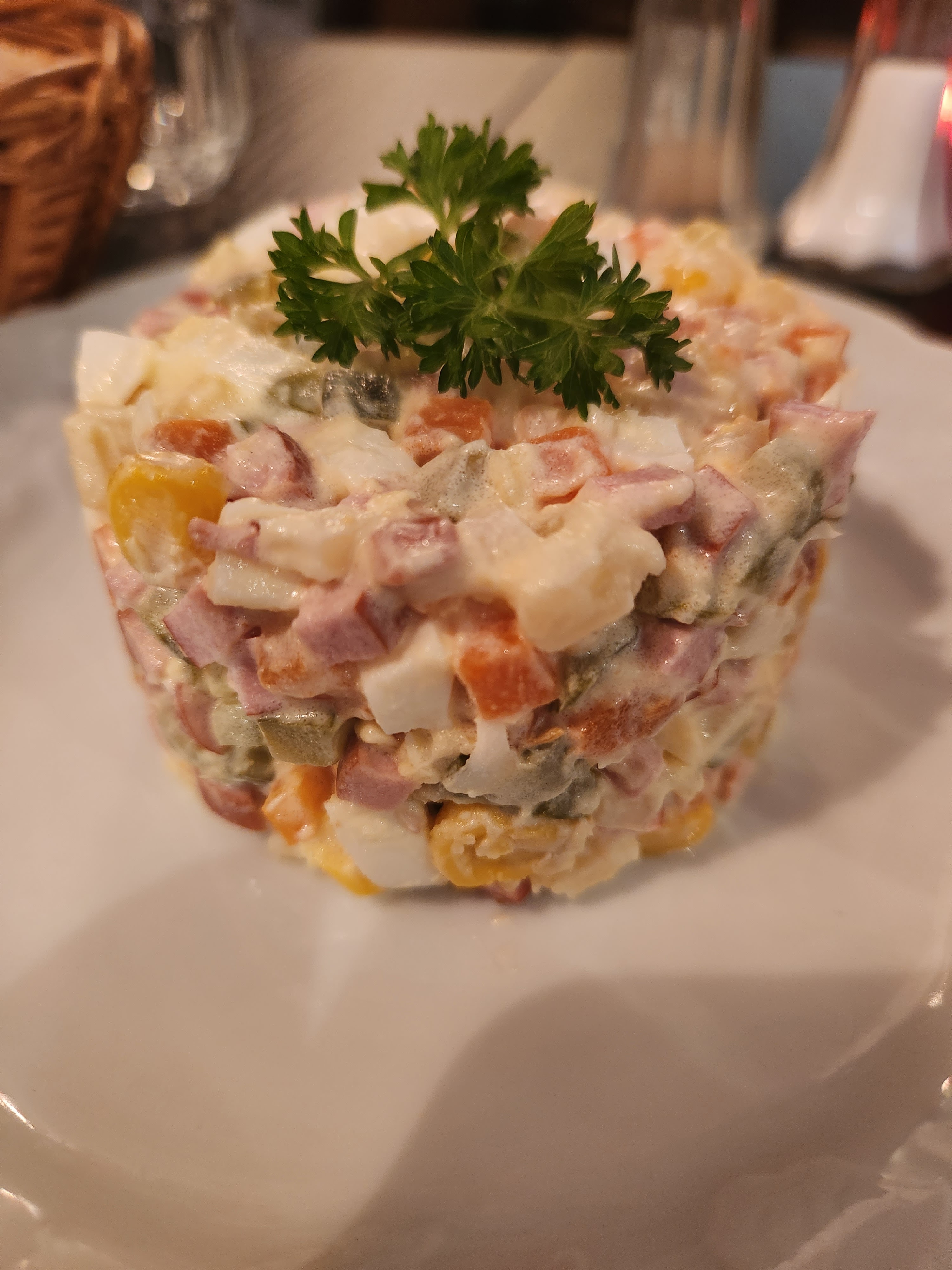 Salade Olivier excellente, manteau de fourrure divin, nantis époustouflant. Pour le dessert, il faut absolument garder une petite place pour les orechkis.