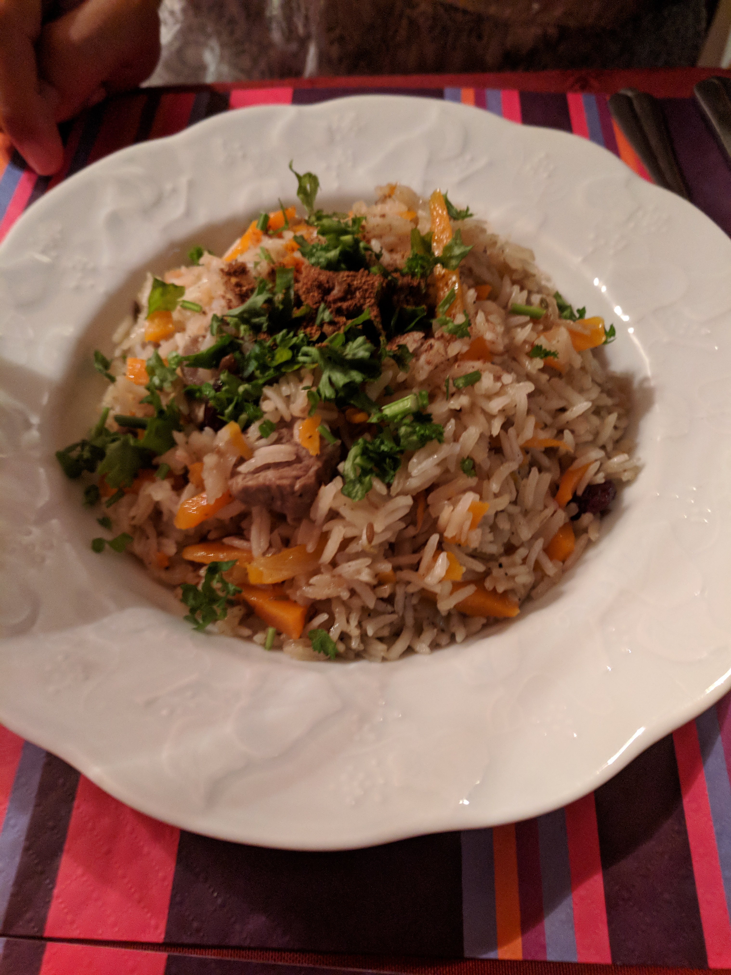 Nous avons beaucoup apprécié le repas dans les meilleures traditions de l’Asie centrale ! Super ambiance pour dîner avec les amis 😊